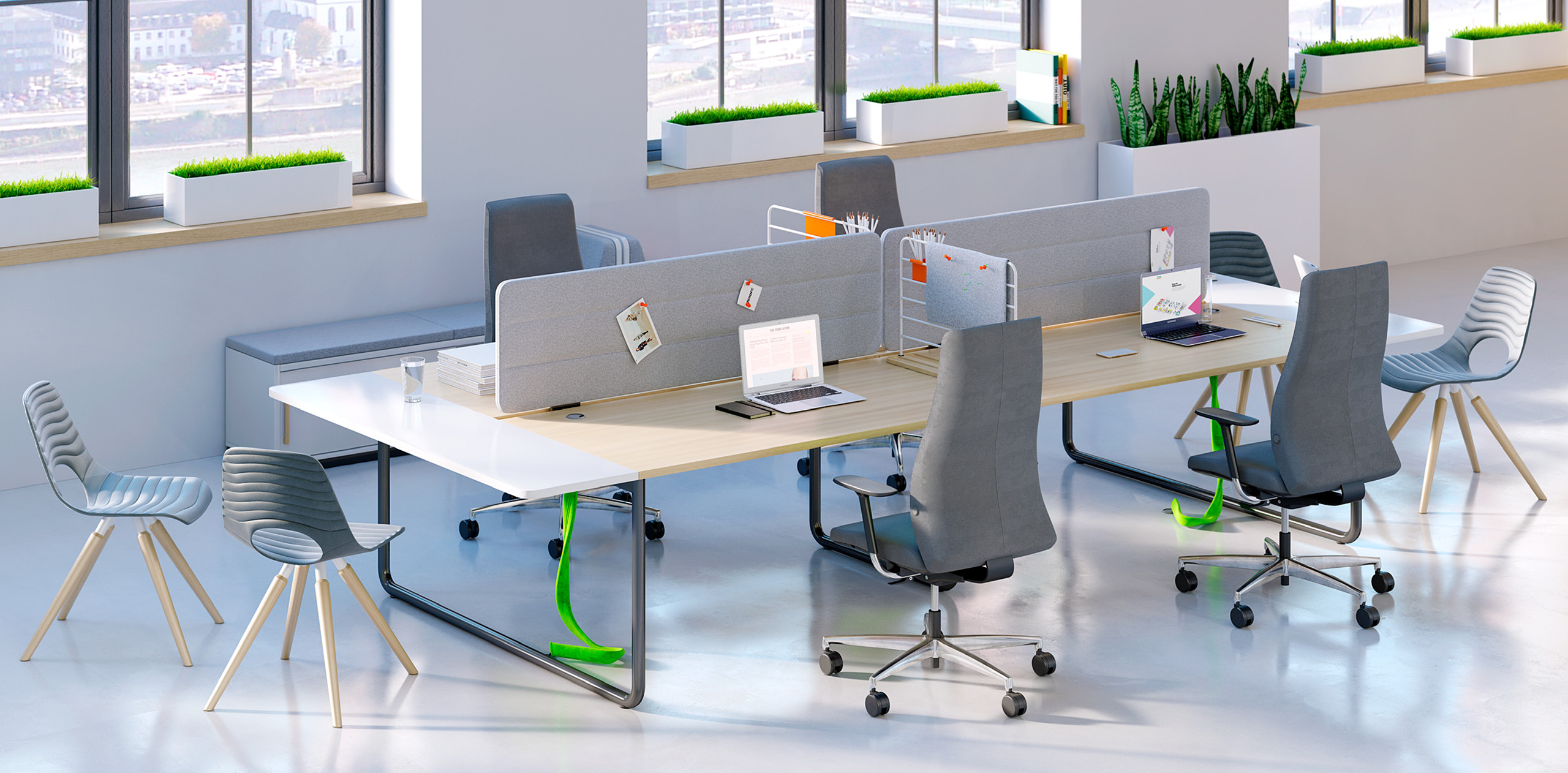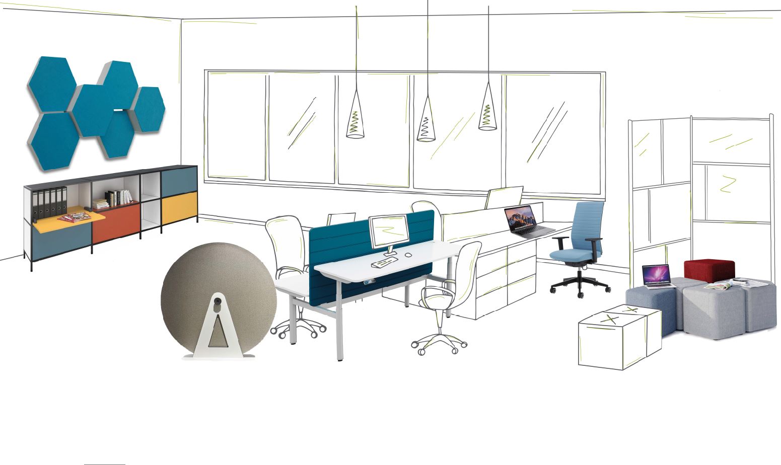 Wir helfen Ihnen bei der Einrichtung Ihrer Arbeitsplätze. Ob Einzelbüros, Teambüros oder Großraumbüros – wir entwickeln mit Ihnen gemeinsam ein schlüssiges Gesamtkonzept.